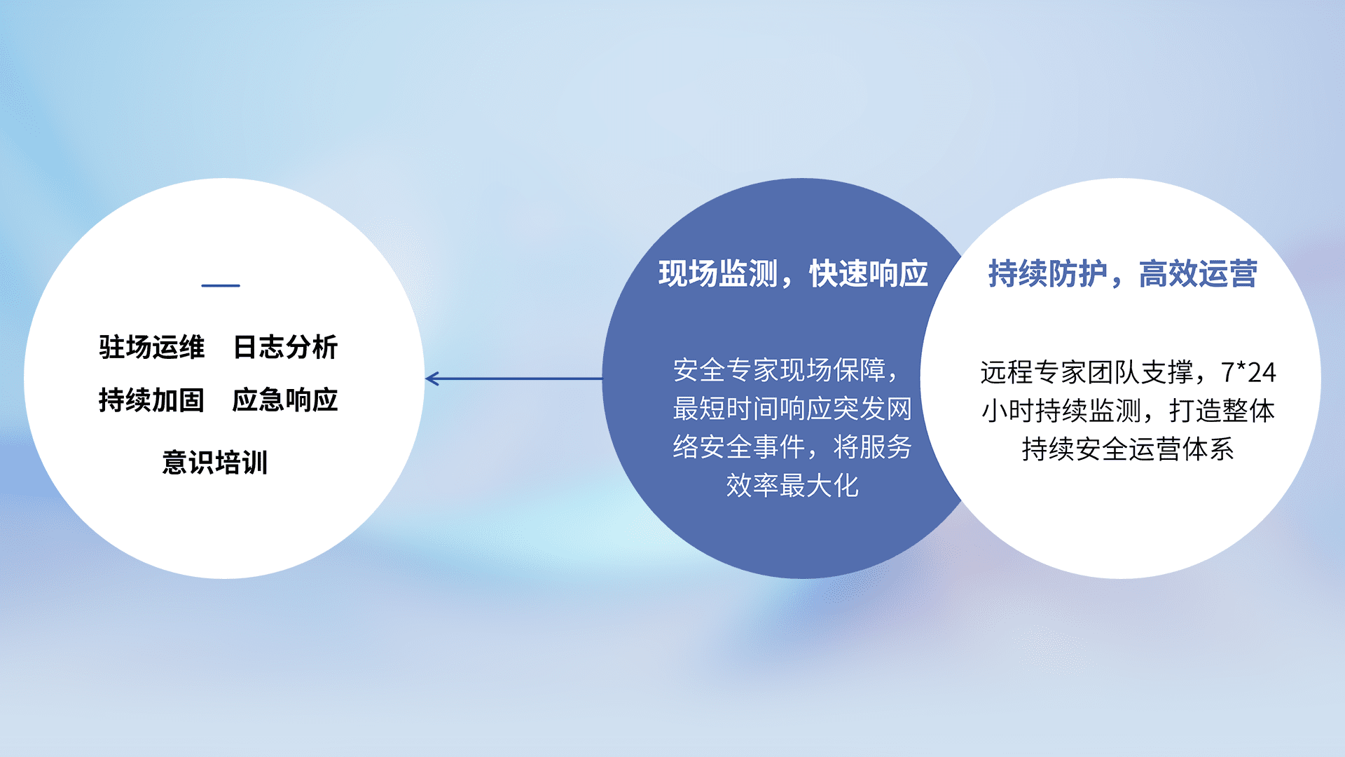 针对客户行业特性,,,提供专属的一站式安全管理服务,,,帮助客户全面感知网络空间威胁,,通过安全专家的线上、、、线下防护支持,,实现风险闭环,,,将安全保障常态化,,为客户打造常态化安全运维运营服务。。。